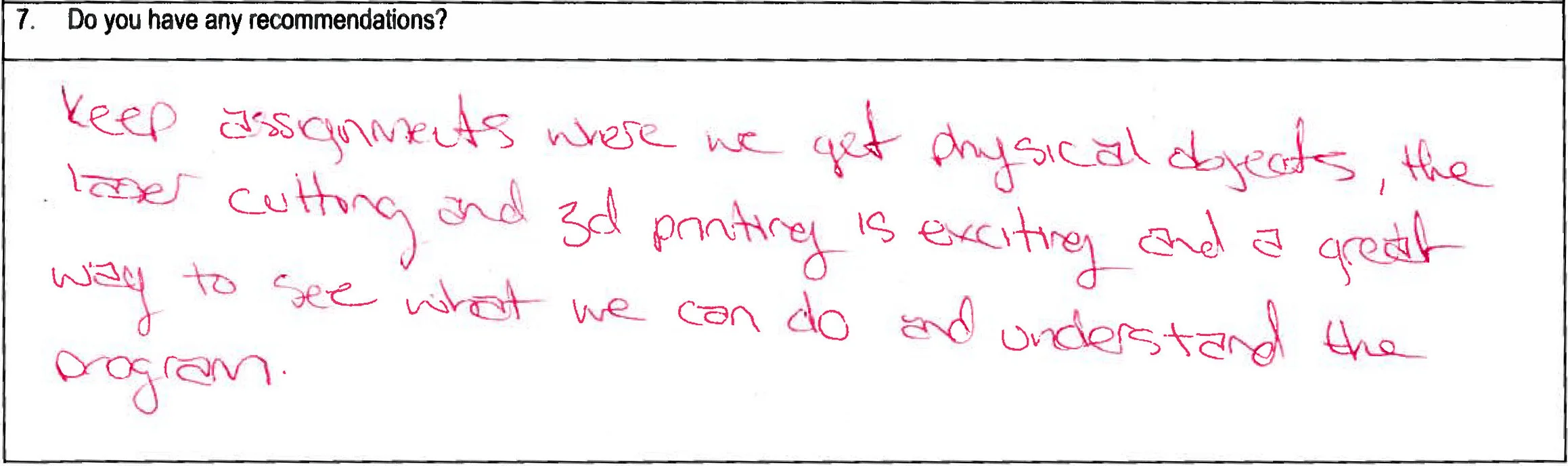 My feedback to his submission in the 3D printing project was as follows: